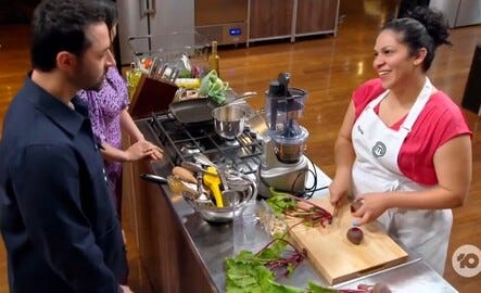 I have to admit to a deep love for MasterChef Australia. I’ve watched every single season, most of them more than once (my husband and I watched all the seasons until our daughter was old enough to appreciate them too, at which point we included her in our viewing sessions; then she began clamouring to see the older seasons too, so we trawled through YouTube etc and watched whatever we could find).