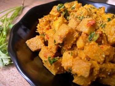 Anyhow: we were watching MasterChef Australia Season 14, and in one of the episodes, a contestant—Keyma Vasquez Montero, who is of Venezuelan origin—made a tarkari. The first time I heard Keyma announce that she was making a traditional Venezuelan dish called a tarkari, I wasn’t exceptionally interested, because I didn’t think there was any way Keyma’s tarkari would be akin to the tarkari I know. ‘Tarkari’ is a common enough word for a vegetable dish here in North India: not a specific dish, but just an umbrella term for vegetables. A term that’s applied to vegetables as such, as well as to the dish prepared from them. It could be dry, it could be a curry-like dish. It could be complex, with a dozen different ingredients; or it could be the very essence of simplicity, the sort of thing you throw together quickly when you don’t have time for anything else.