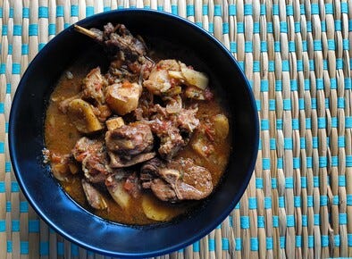 And hey presto, a curry in a place you wouldn’t expect. It tastes fabulous, too. Keyma’s recipe can be found here as a reel on her Instagram account. This one is for a kangaroo version of the dish, but it is pretty much the same as her original goat meat tarkari recipe, the Tarkarí de Chivo. If you’d rather a text-only version, her goat tarkari recipe is to be found here.