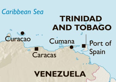 I found the answer to that riddle in an unexpected way. Later that year, I happened to meet linguist Peggy Mohan (who is of Trinidadian descent) at a literary festival. I mentioned the conundrum of the Venezuelan tarkari to Peggy, and she told me that Venezuela is separated from Trinidad by only a few kilometres: you can actually see the other country across the water that lies between them. (Yes. I should have looked at a map in the first place. Just goes to show).